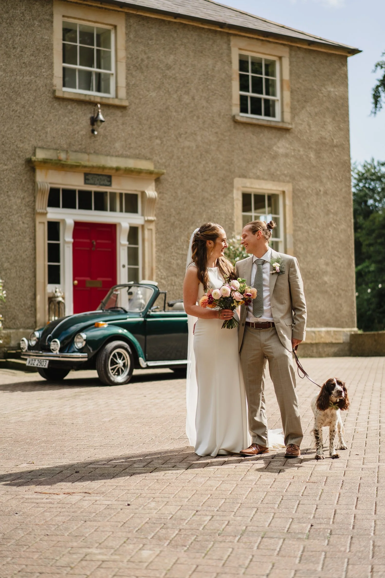 If your dog is likely to get stressed or overstimulated at your wedding, but you’d still desperately love to have them in your photos, consider having a first look. This way you both get to see your dog and have photos with them, but they avoid the stress and commotion from the ceremony onwards.